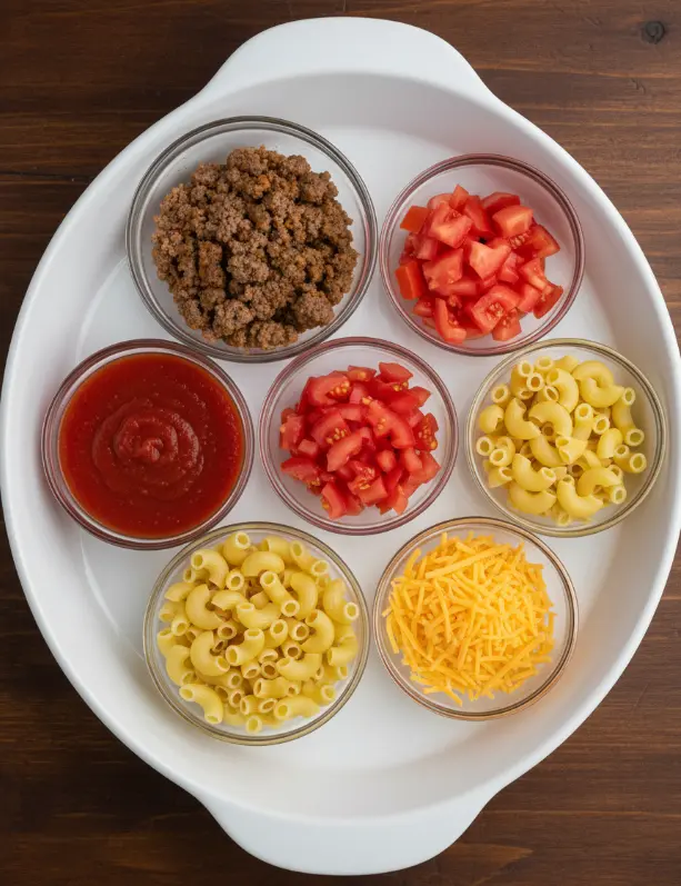 Whip up this 5-Ingredient Cheesy Taco Pasta with pantry heroes that deliver bold, savory bliss. Picture the sizzle of seasoned beef mingling with tangy tomatoes and gooey cheddar—pure comfort in every bite. Here’s what you’ll need (serves 6):