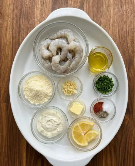Air Fryer Garlic Parmesan Shrimp Ingredients (Serves 4 as main, 6 as app)