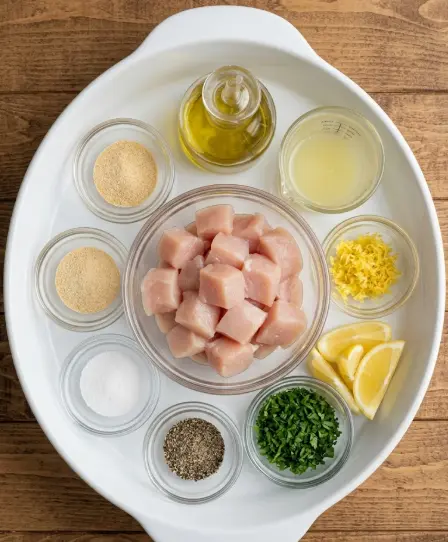 Air Fryer Lemon Chicken Bites Ingredients (Serves 2 as main, 4 as app)