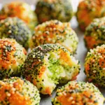 Lightly spray or brush the tops with olive oil – this simple step creates that irresistible crispy exterior while keeping the interior moist. Bake for 18-20 minutes, rotating the pan halfway through for even browning. The Baked Broccoli Cheese Balls are done when they’re deeply golden and feel slightly firm to the touch. Let them rest for 5 minutes on the baking sheet before serving – this allows the structure to set properly.