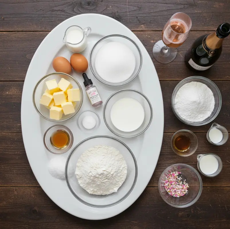 Gathering the right ingredients is key to nailing this Champagne Cupcakes Recipe. I’ve curated this list based on tried-and-true baking principles, with sensory descriptions to get your mouth watering—think of the creamy richness of butter mingling with the crisp fizz of champagne. This makes about 24 cupcakes, perfect for sharing.