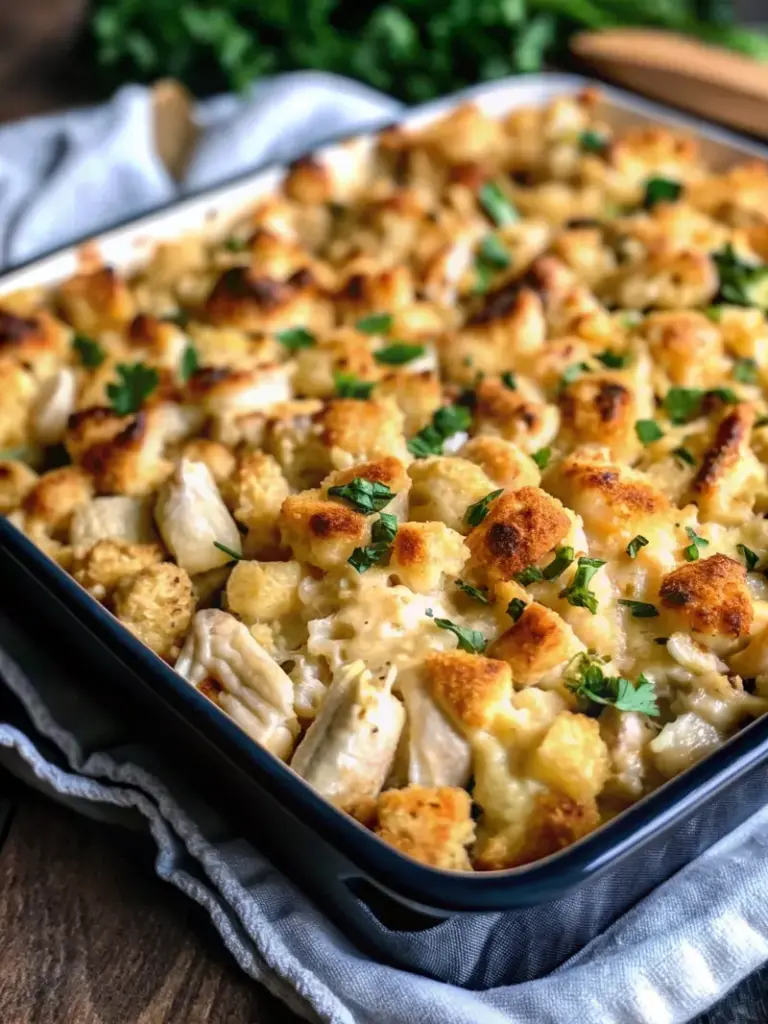 Substitution Suggestions: Swap Greek yogurt for sour cream to reduce calories, use vegetable broth for a lighter taste, or try gluten-free stuffing mix for dietary restrictions. Turkey can easily replace chicken for post-holiday meal planning.