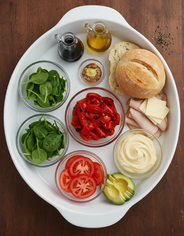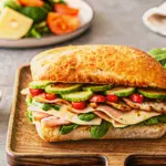 - Vegan Version: Turkey/ham → tempeh slices; provolone → vegan cheese; mayo → tahini.