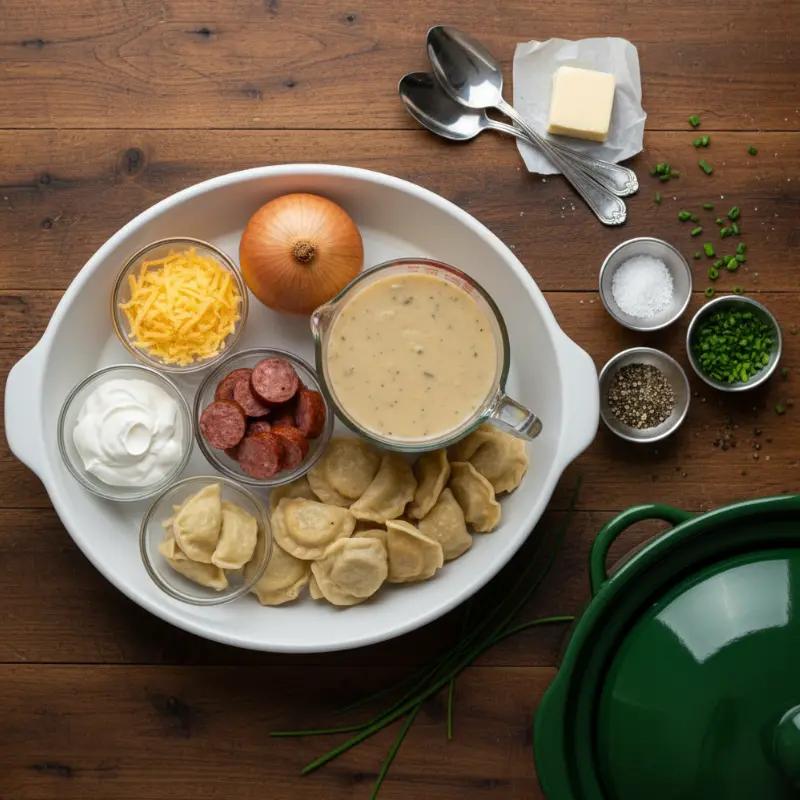 Creating the perfect Crockpot Pierogi Casserole with Kielbasa requires quality ingredients that work harmoniously together. Here’s what you’ll need for this crowd-pleasing dish: