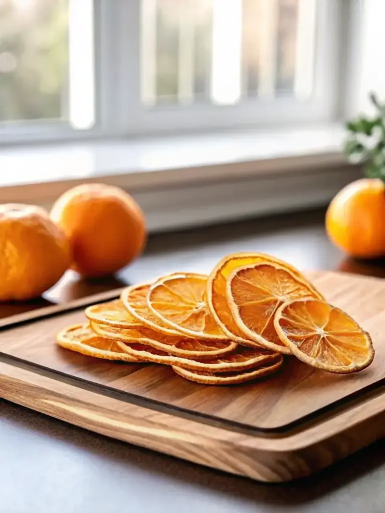 Keywords: dried orange slices, dehydrated oranges, healthy snacks, citrus garnish, homemade dried fruit