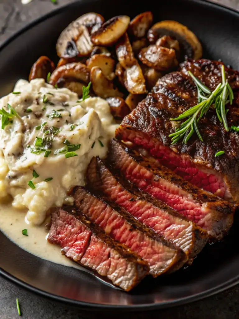 3. Sear steaks 4–5 minutes per side for medium-rare. Remove and rest under foil.