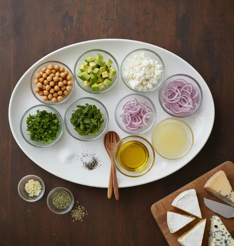 Creating the perfect Mediterranean Chickpea Feta Salad starts with quality ingredients that work in harmony. Here’s what you’ll need for this vibrant dish: