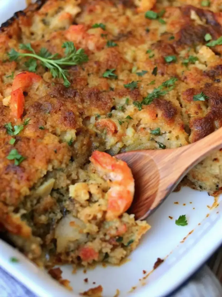 Keywords: seafood cornbread dressing, southern stuffing, shrimp and crab dressing, holiday side dish, cornbread dressing recipe