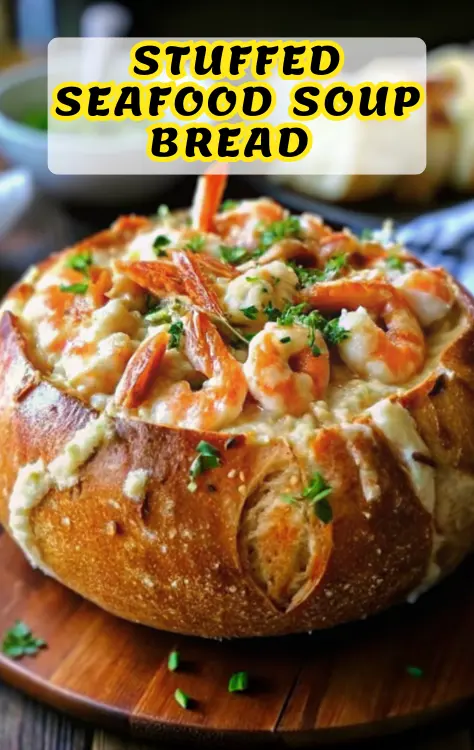 This Stuffed Seafood Soup Bread Bowl delivers restaurant-quality elegance with approachable preparation. Its creamy broth, premium seafood, and crusty bread vessel create an unforgettable dining experience in under 90 minutes. Try this recipe tonight and share your creation in the comments—we love seeing your culinary masterpieces! Don’t forget to subscribe for more coastal-inspired recipes that transform weeknight dinners into special occasions.