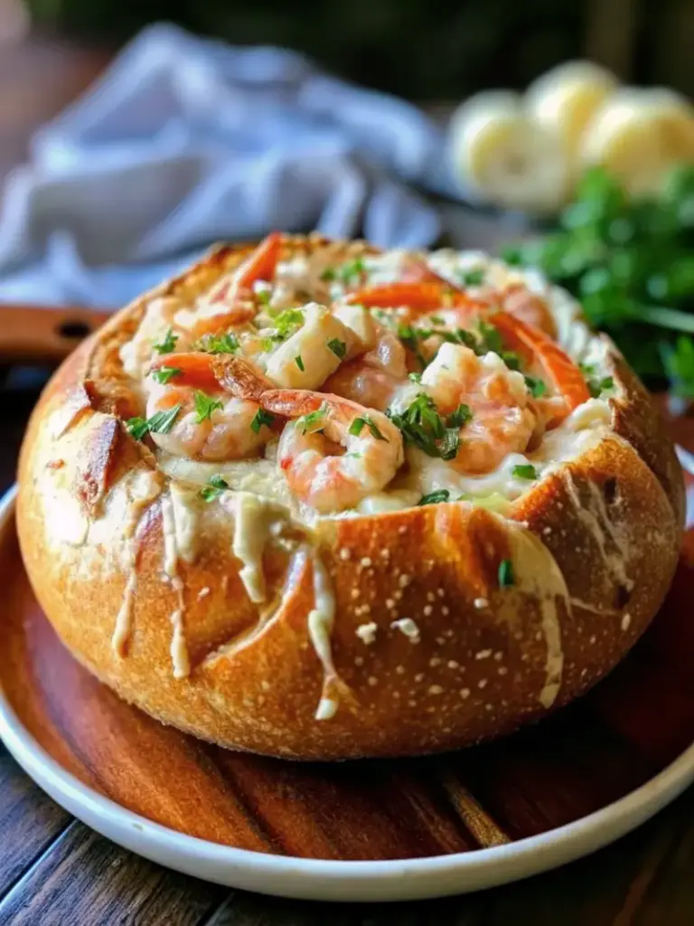 Elevate your Stuffed Seafood Soup Bread Bowl experience with these presentation ideas: