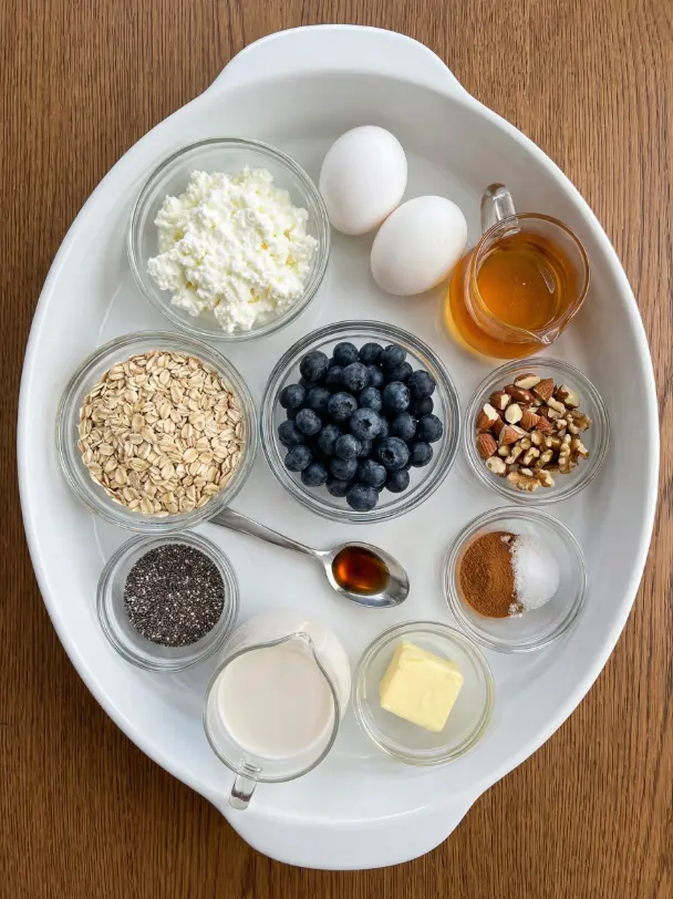 Gather these wholesome ingredients for your blueberry cottage cheese breakfast bake—they’re straightforward, pantry-friendly, and packed with flavor. This recipe serves 6-8, perfect for family breakfasts or meal prep.