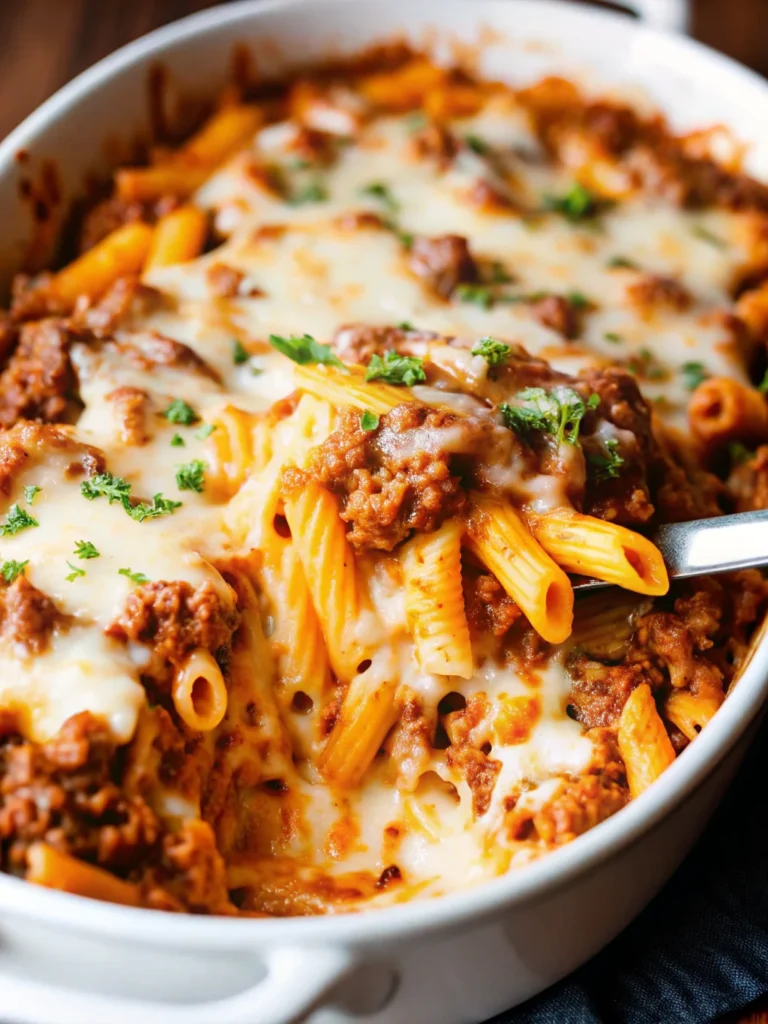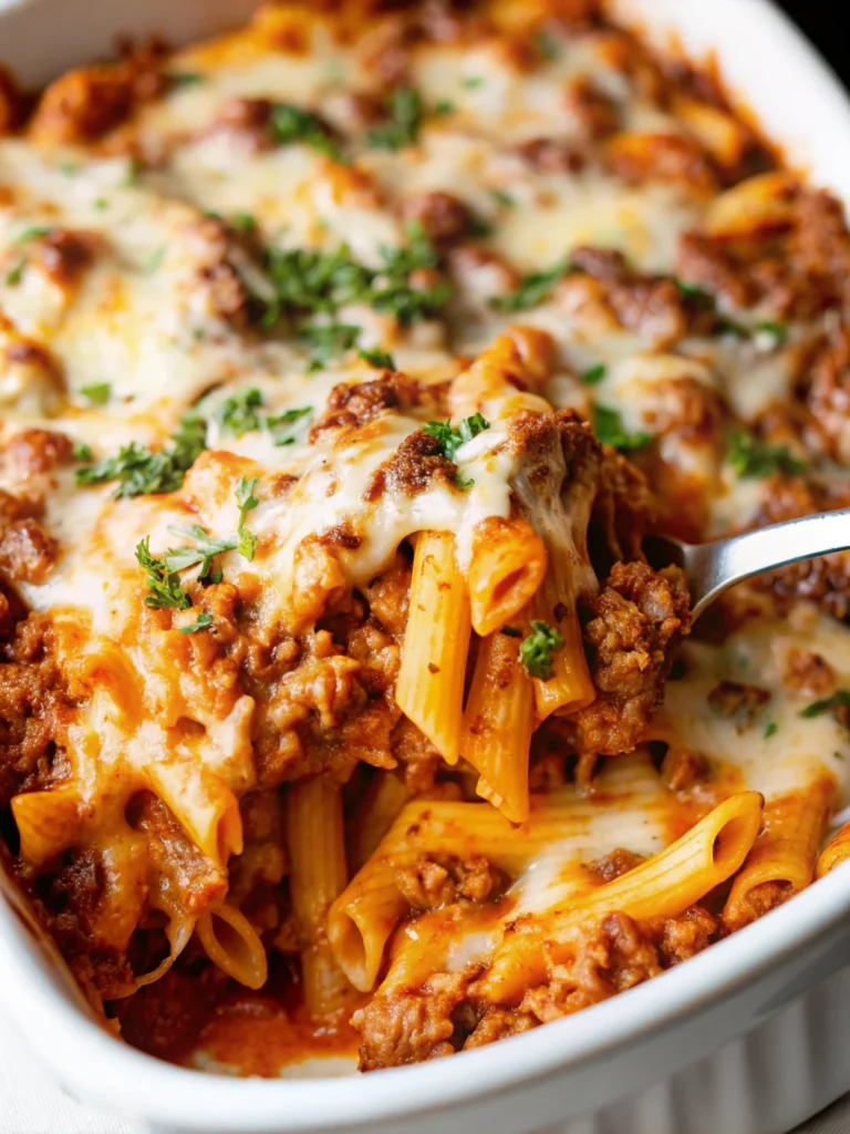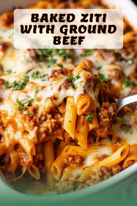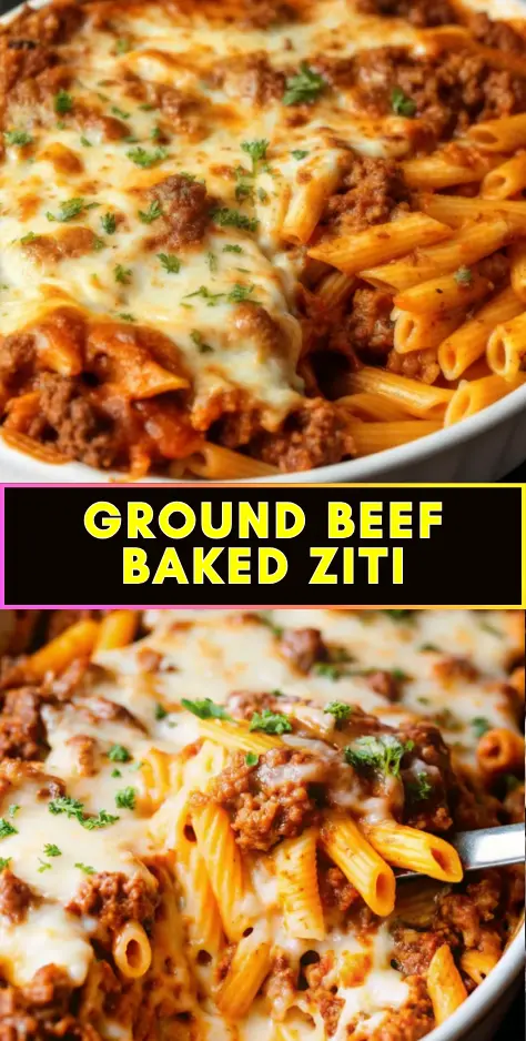 Keywords: baked ziti, ground beef pasta, cheesy casserole, Italian-American recipes, pasta bake
