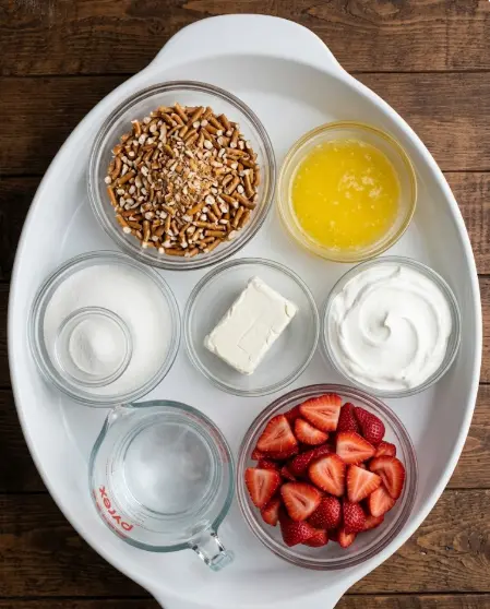 Classic Strawberry Pretzel Salad Ingredients (9×13 pan – 12–15 servings)