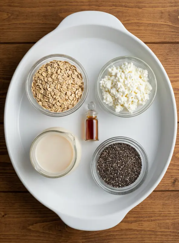 Gather these simple pantry staples for one generous serving of cottage cheese overnight oats—yielding that impressive 30g protein punch. I’ve included sensory notes to get your taste buds tingling and substitutions for dietary tweaks: