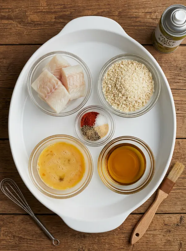 - 4 (5–6 oz each) cod fillets (haddock, tilapia, or pollock work great too)