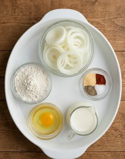 Remove onions from buttermilk, letting excess drip off. Dredge each ring thoroughly in seasoned flour, pressing gently to adhere. For extra crispy (restaurant-style), double dip: back into buttermilk, then flour again.