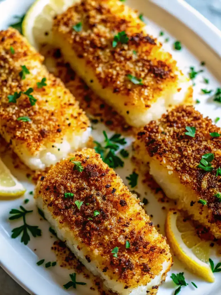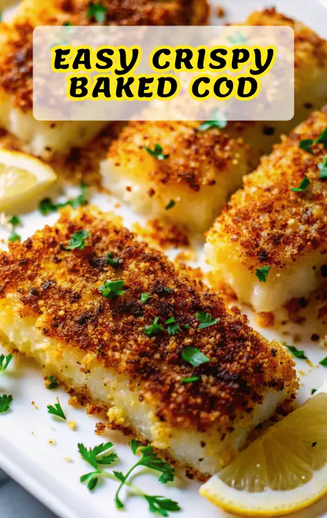Keywords: crispy baked cod, baked fish recipe, healthy cod dinner, easy seafood recipe, oven baked cod