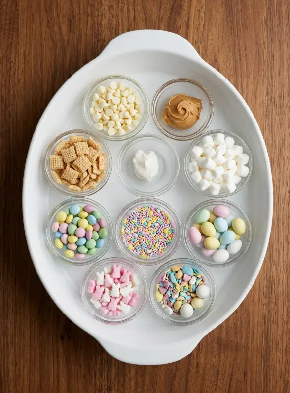 • 100g small pastel chocolate candies or bunny-shaped candies (adorable Easter charm).