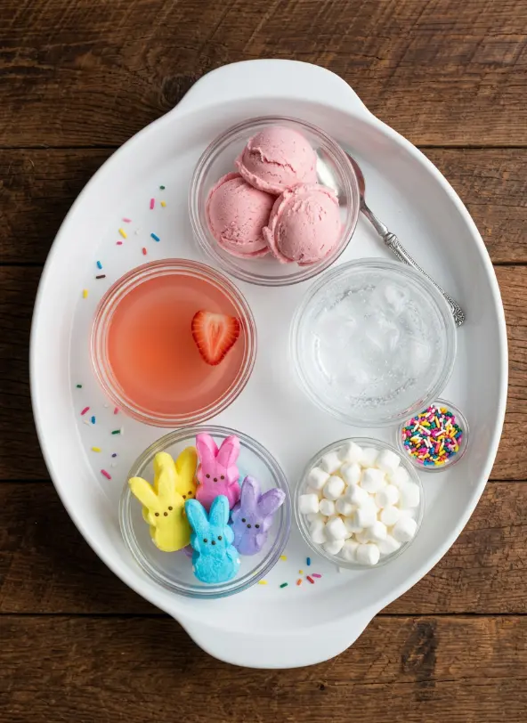 - Toppings: Bunny Peeps (3-4 for whimsy), mini marshmallows (a handful for fluff), and colorful sprinkles (1-2 tsp for confetti fun). Substitution: Vegan marshmallows or homemade bunny-shaped gummies.