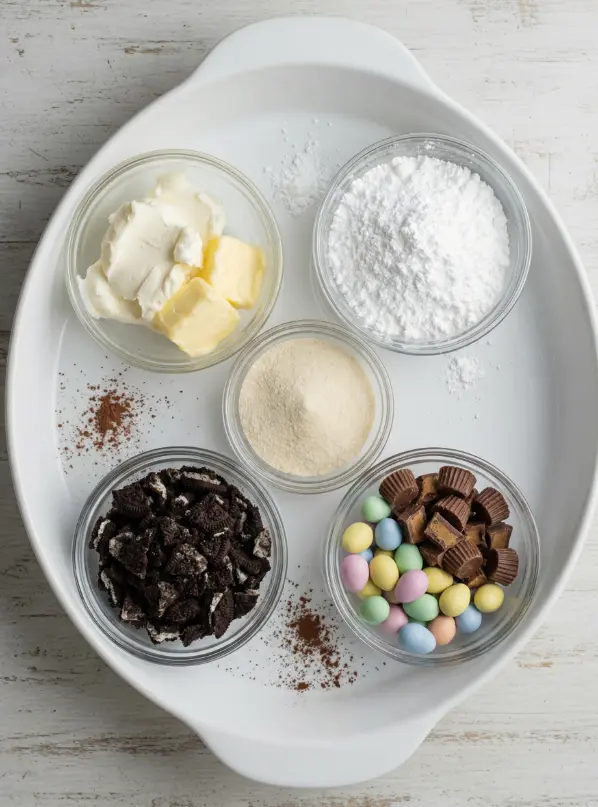 Gather these simple pantry staples for your Easter Dirt Cake Casserole—they come together for a crowd-pleasing treat bursting with creamy sweetness and crunchy texture. I’ve included sensory notes and smart substitutions to make it foolproof.