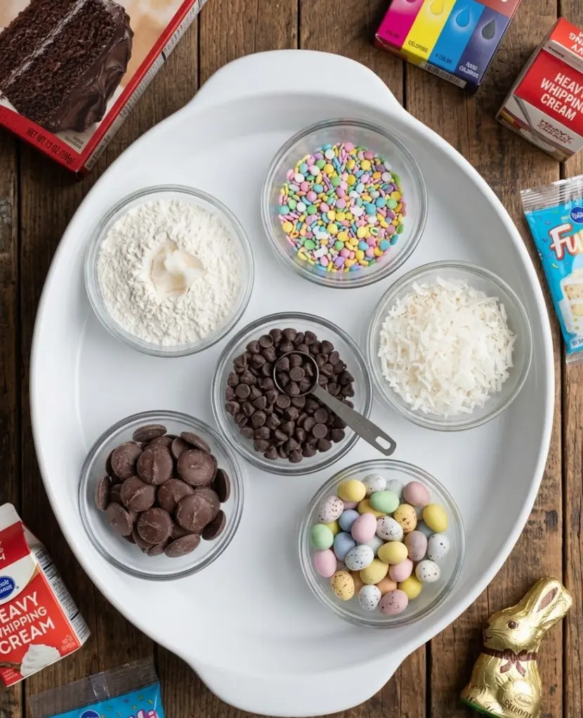 - Pastel or Easter-colored sprinkles (final festive flourish – crunchy, colorful pop).