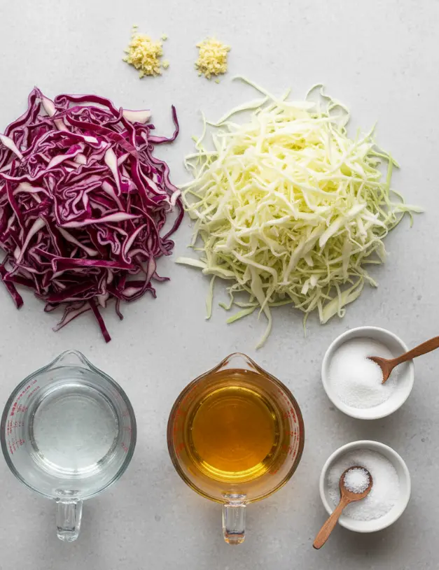 - 900g red cabbage or white cabbage (about 2 pounds) – Choose firm, heavy heads with crisp outer leaves. Red cabbage provides stunning color and slightly more antioxidants, while white cabbage offers a milder flavor.