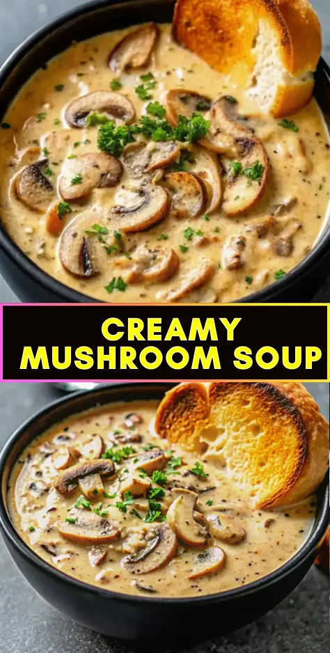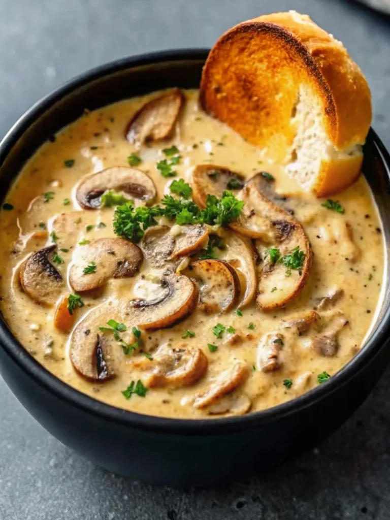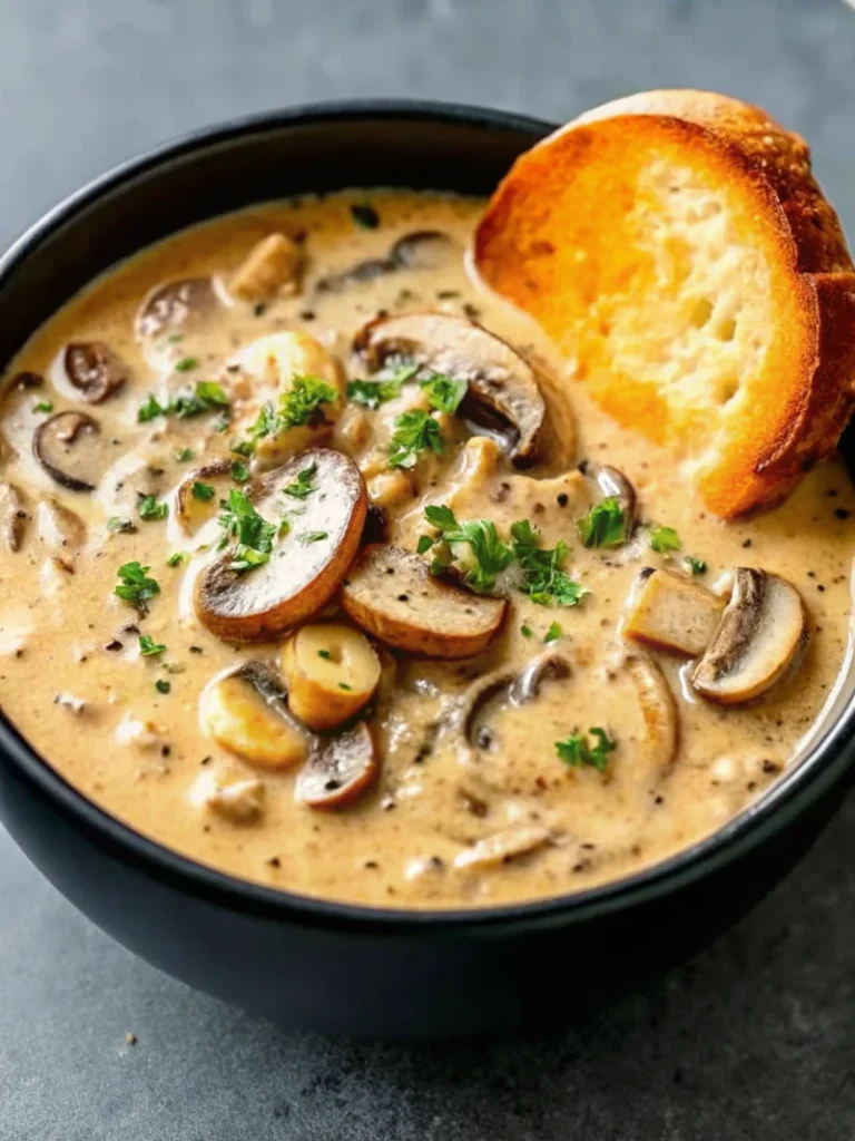 Meal Extensions: Transform this creamy mushroom soup into a complete dinner by serving over pasta or rice, creating a hearty mushroom stroganoff-inspired dish.