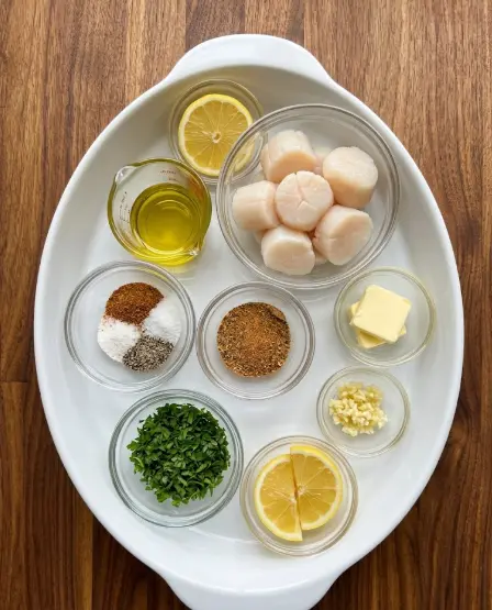 Air Fryer Garlic Butter Scallops Ingredients (Serves 2 as main, 4 as app)