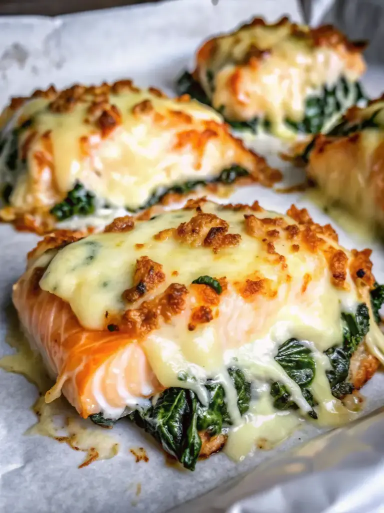 Baked Salmon with Spinach and Mozzarella Bliss is an easy yet elegant dinner made with tender salmon fillets topped with a creamy spinach mixture and melted mozzarella. Ready in under 40 minutes, this nutritious, low-carb-friendly recipe is perfect for busy weeknights or entertaining guests.