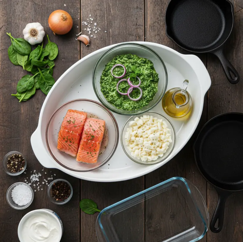 Prepare the spinach mixture up to 2 days in advance. Store separately from salmon in refrigerated containers. Assemble just before baking for maximum freshness and optimal texture.