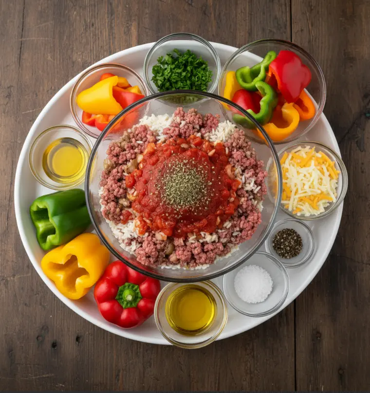 Here’s everything you’ll need to create restaurant-quality beef stuffed bell peppers at home: