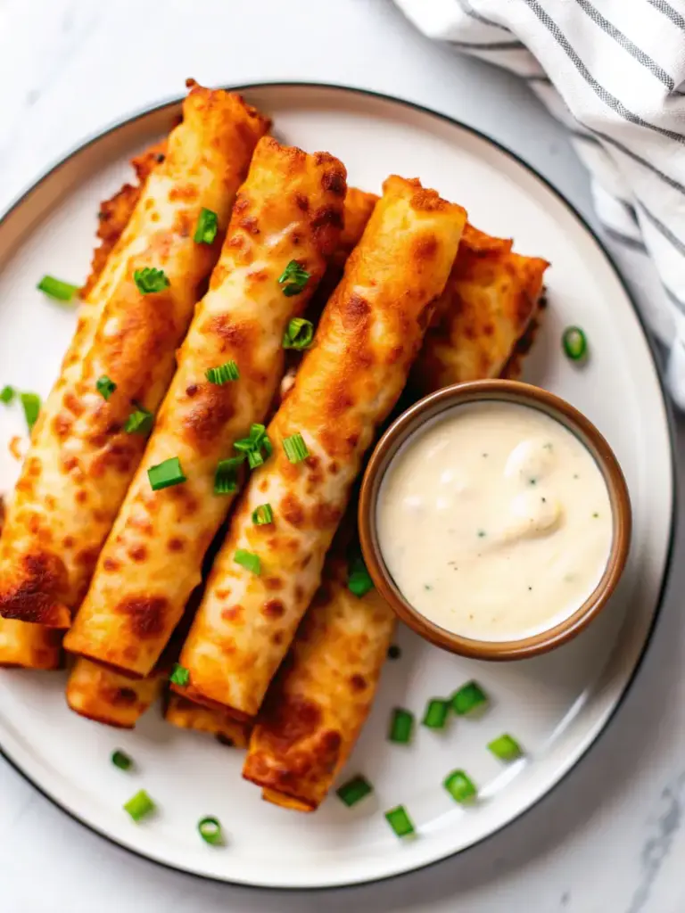 While taquitos cook, mix 1/2 cup Greek yogurt (or sour cream), 2 tbsp ranch dressing, 1 tbsp buffalo sauce, and 1 tbsp chopped chives. The cool, creamy dip provides the ideal counterbalance to the spicy filling. For authenticity, add a pinch of blue cheese crumbles to channel that classic buffalo wing experience.