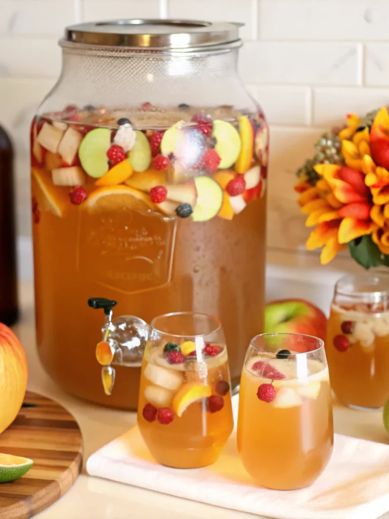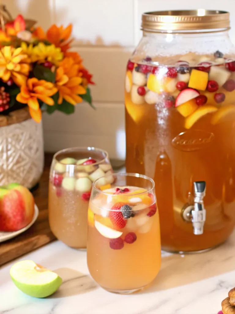 Arrange the apple slices and cranberries in the punch, creating an Instagram-worthy presentation. The contrast of red and green against the golden punch creates stunning visual appeal that guests will remember long after the party ends.