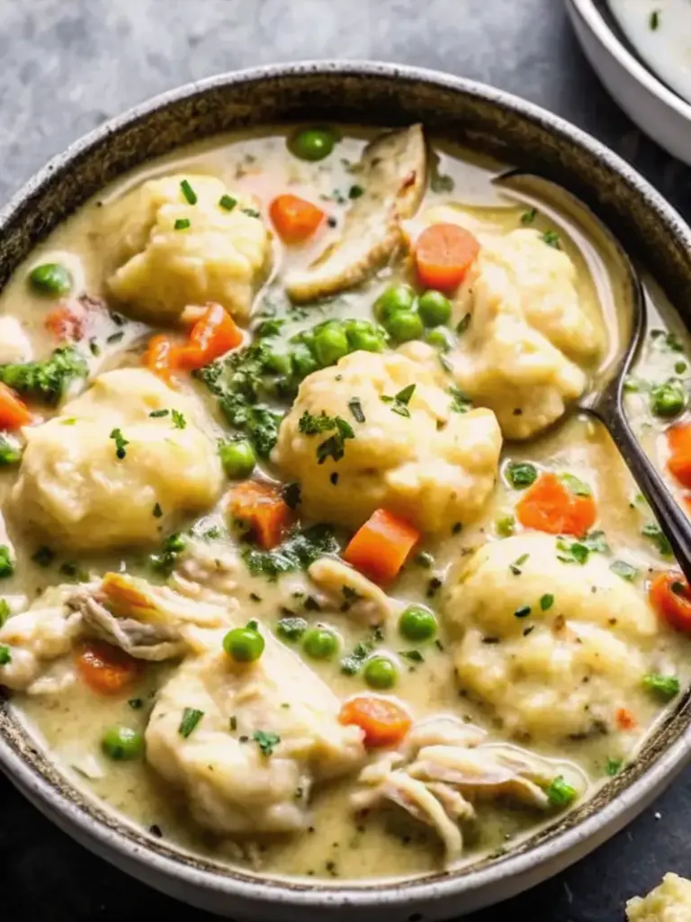 A classic, soul-warming Chicken and Dumplings featuring tender chicken, rich broth, and perfectly fluffy dumplings—true Southern comfort in a bowl.