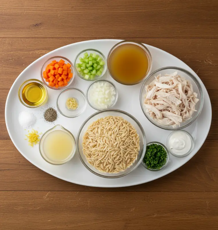Here’s what you’ll need to create this delicious lemon chicken orzo soup: