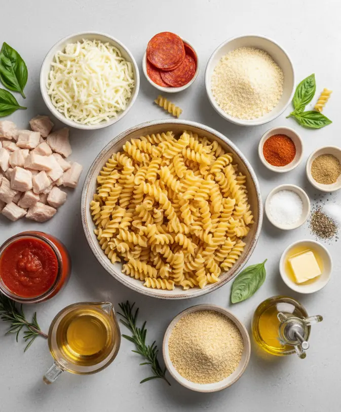 Preheat your oven to 425°F and generously grease a 9×13-inch baking dish. The higher temperature ensures proper pasta cooking while developing that coveted golden-brown top. Season your chicken pieces with salt, pepper, and half the Italian seasoning – this pre-seasoning step amplifies flavor throughout every bite.