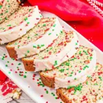 This Ultimate Christmas Bread recipe combines the festive sweetness of holiday sprinkles with a rich, tender crumb that stays moist for up to five days, thanks to sour cream and whole milk. Topped with a smooth vanilla glaze, it’s the perfect centerpiece for your holiday table or a thoughtful homemade gift.