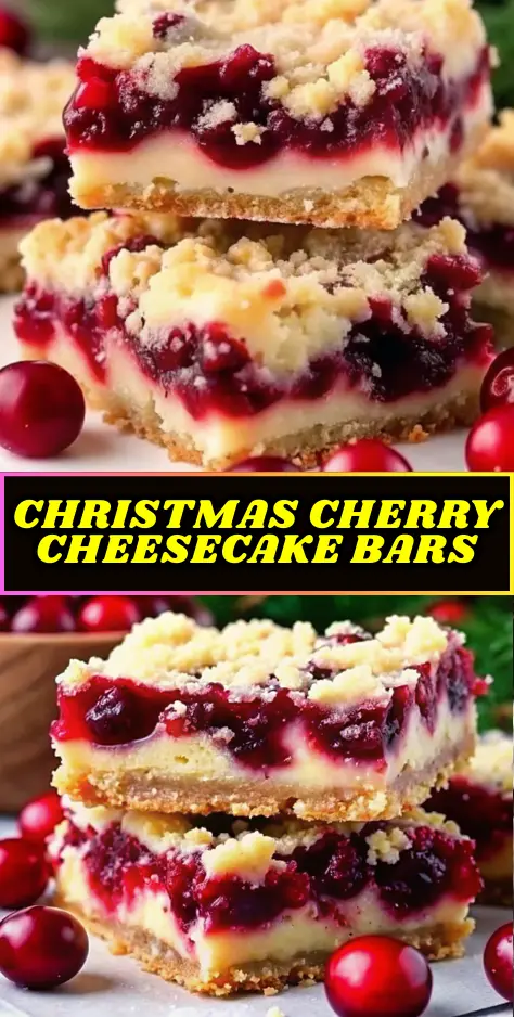 Keywords: christmas cherry cheesecake bars, cheesecake bars, cherry dessert, holiday baking, festive dessert