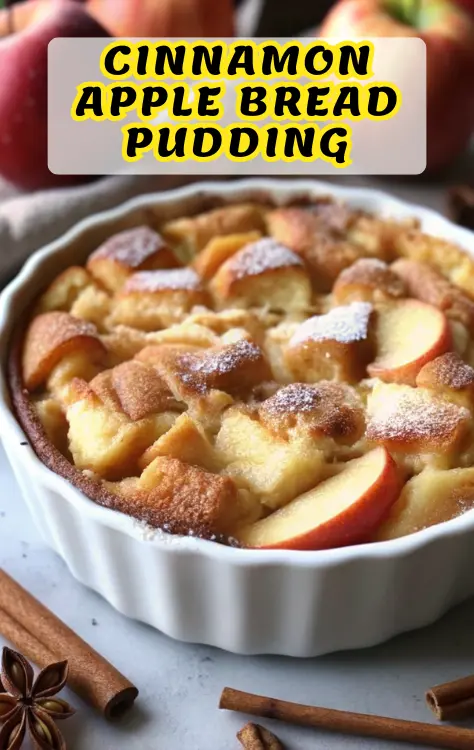 Keywords: cinnamon apple bread pudding, comfort dessert, baked pudding, easy apple dessert, fall recipe