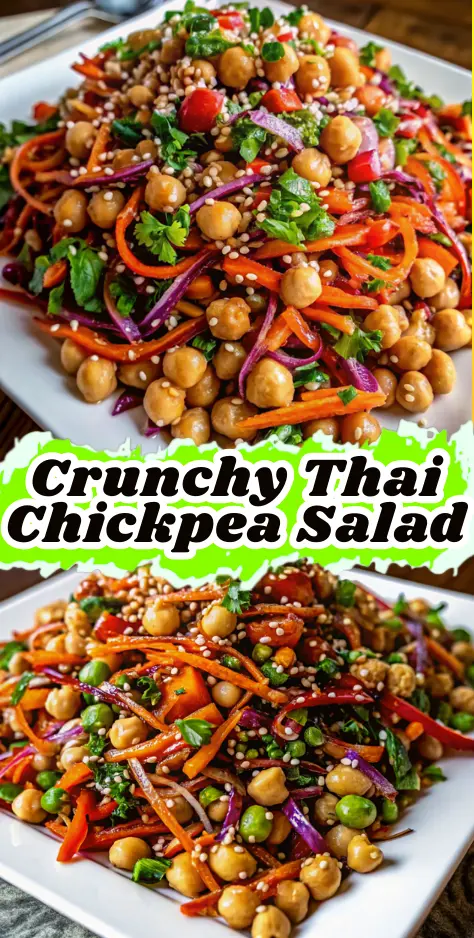 Serve your crunchy Thai chickpea salad in a chilled bowl with a side of coconut water or herbal iced tea. The complete amino acid profile from chickpeas makes this sufficient as a standalone lunch.
