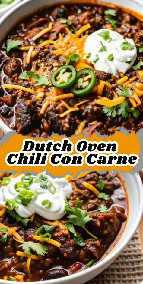 This Dutch oven chili con carne delivers tender beef, smoky chilies, and spice harmony in 2.5 hours. Authentic, customizable, and crowd-approved—perfect for gatherings. Try it tonight! Share your tweaks in comments or reviews below, and subscribe for more chili recipes and tips.