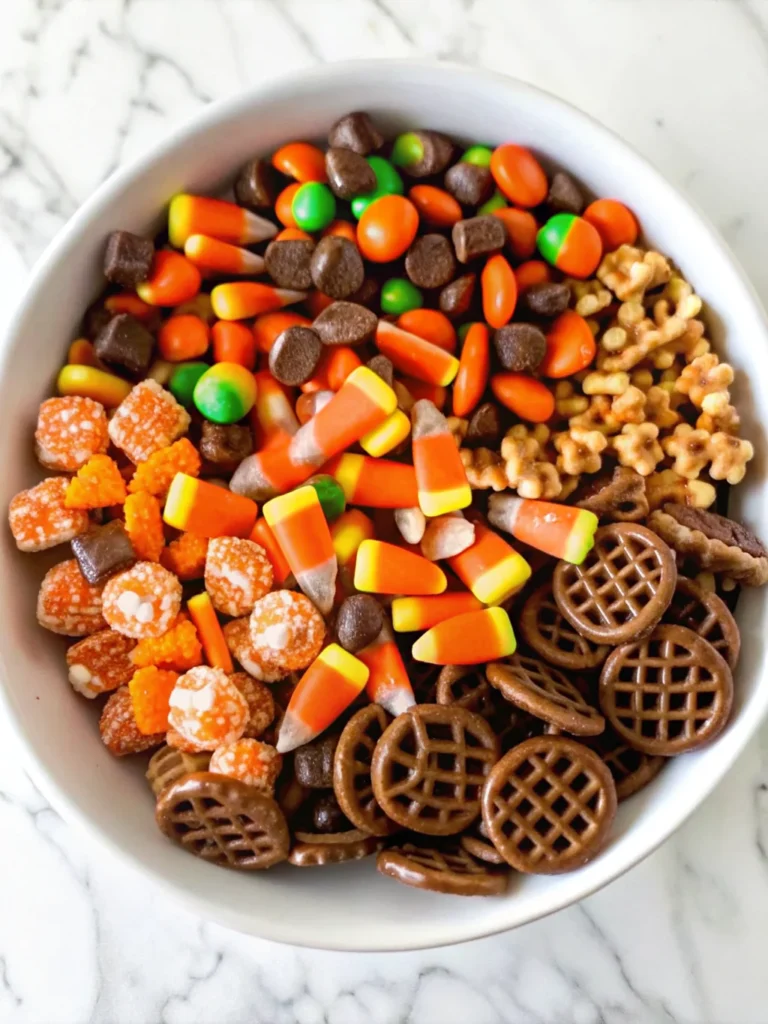 A quick and festive no-bake snack mix that blends caramel corn, pretzels, Rolos, candy corn, and colorful chocolates into the perfect sweet-and-salty autumn treat.