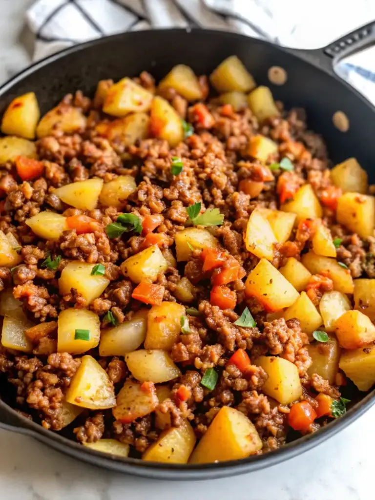 Un plat réconfortant et riche en protéines à base de dinde hachée et de pommes de terre dorées, idéal pour un dîner rapide, nourrissant et économique.