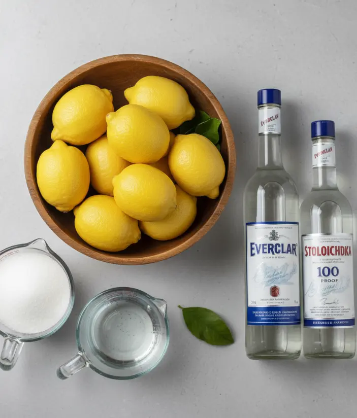 - 1 (750ml) bottle Everclear or high-proof vodka (such as Stoli 100) – The authentic Italian way is to use grain alcohol (Everclear). This will extract the flavor from the lemon peels much better than regular vodka.