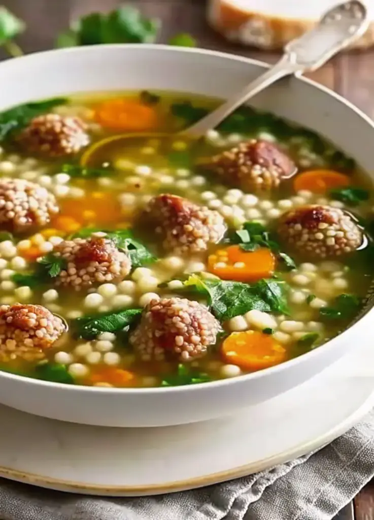 Italian Wedding Soup is a classic comfort dish made with tender homemade meatballs, leafy greens, delicate pasta, and a rich chicken broth. This authentic, restaurant-quality recipe is easy to prepare at home and perfect for cozy family meals or elegant gatherings.