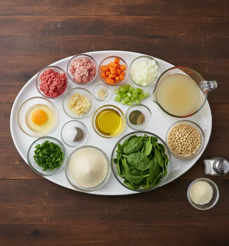 Creating authentic Italian Wedding Soup begins with quality ingredients. Here’s your complete ingredient breakdown with optional substitutions for dietary flexibility: