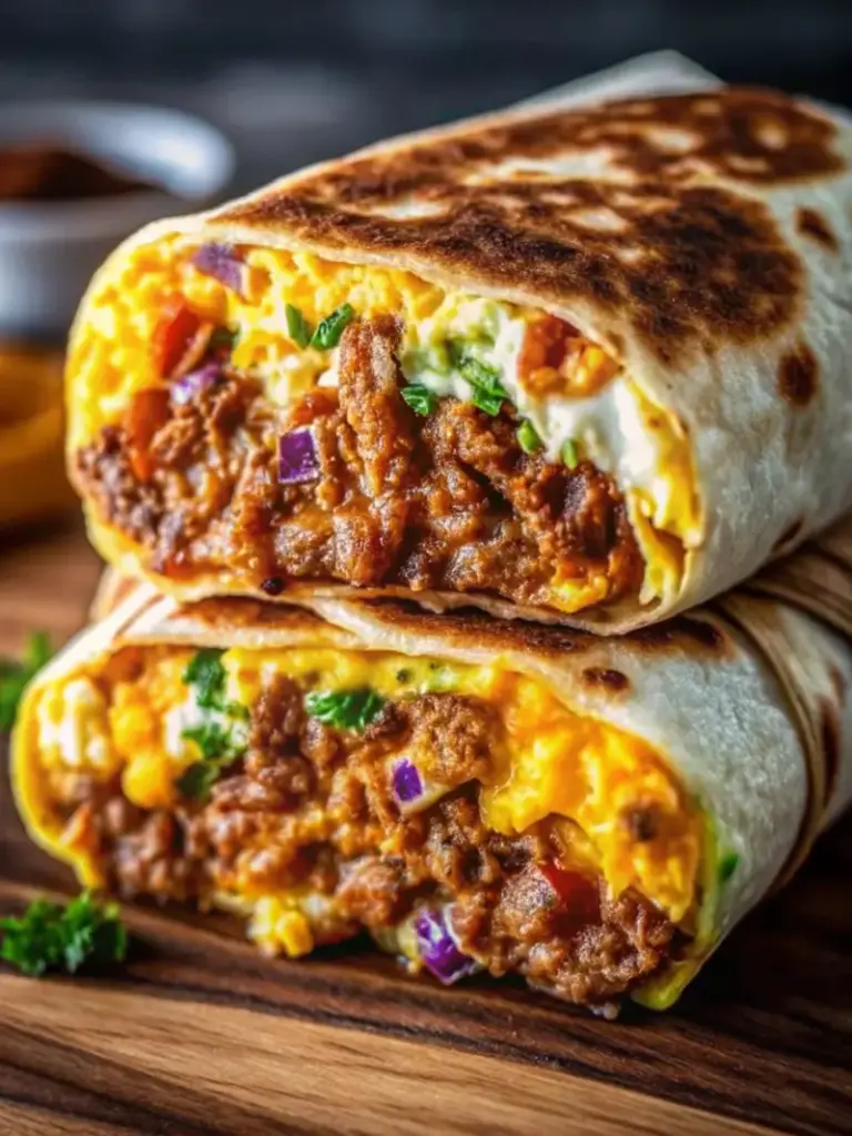 Loaded Breakfast Burritos deliver fluffy eggs, smoky halal sausage, crisp veggies, melty cheese, and fresh toppings in 25 minutes. Hearty, customizable, and nutritious – the ultimate savory start. Try this loaded breakfast burrito recipe today! Share your twists in comments, rate below, or subscribe for more breakfast ideas.