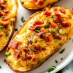These twice baked potatoes deliver creamy, cheesy perfection with crispy skins that elevate any meal. Simple enough for weeknights yet impressive for special occasions, they’re the ultimate comfort food made foolproof. Try this recipe today and discover why twice baked potatoes consistently rank among America’s favorite side dishes—then share your experience in the comments below!