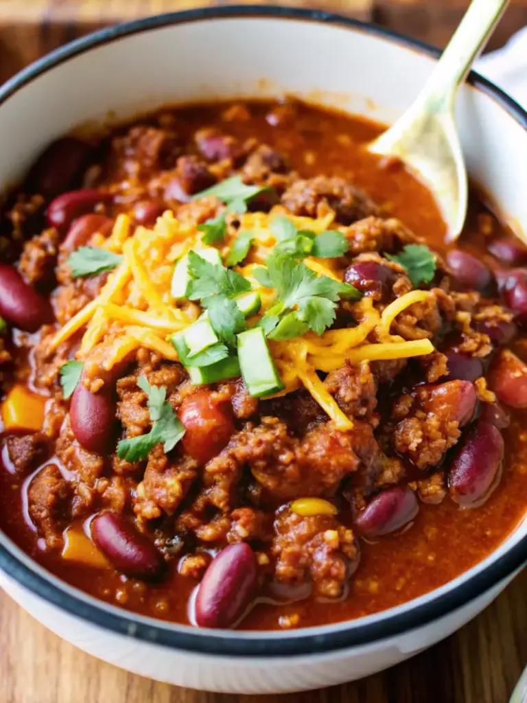 The Pioneer Woman Chili recipe delivers hearty comfort with a perfect balance of protein, beans, vegetables, and spices. Unlike traditional thick chili, this version has a delicious chili soup consistency, making it ideal for family dinners or meal prep.