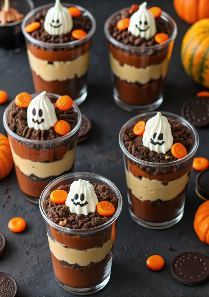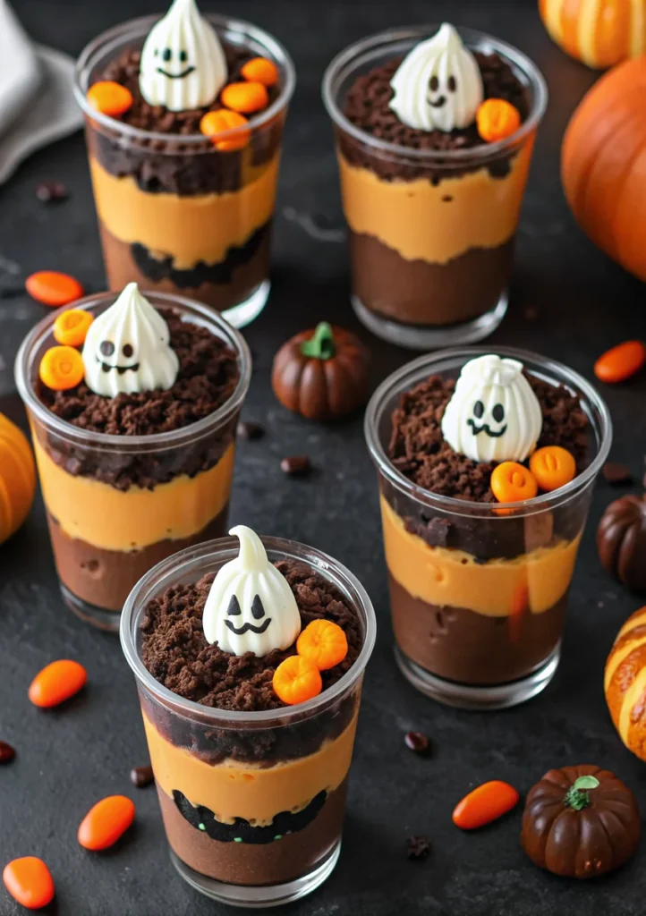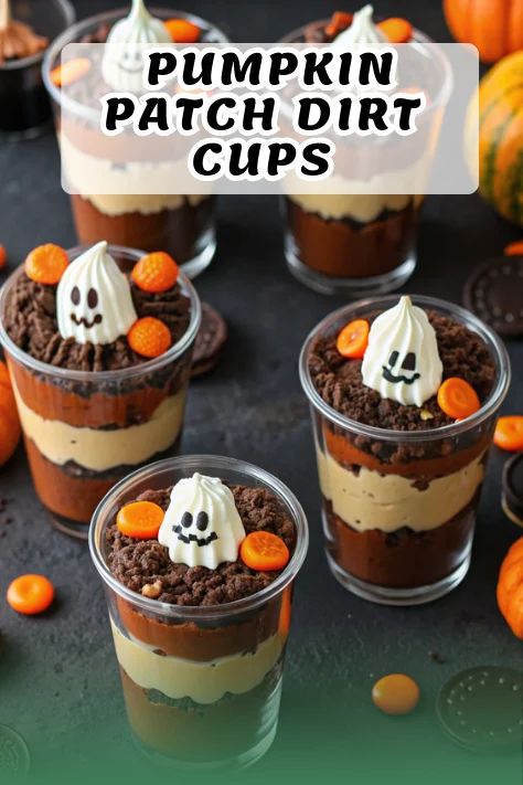 Keywords: pumpkin patch dirt cups, halloween dessert, no-bake recipe, oreo pudding cups, fall treats